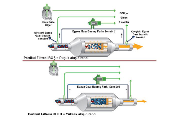 - Aktif Rejenerasyon: Araç kontrol sistemi tarafından başlatılır ve motor sıcaklığını artırır.